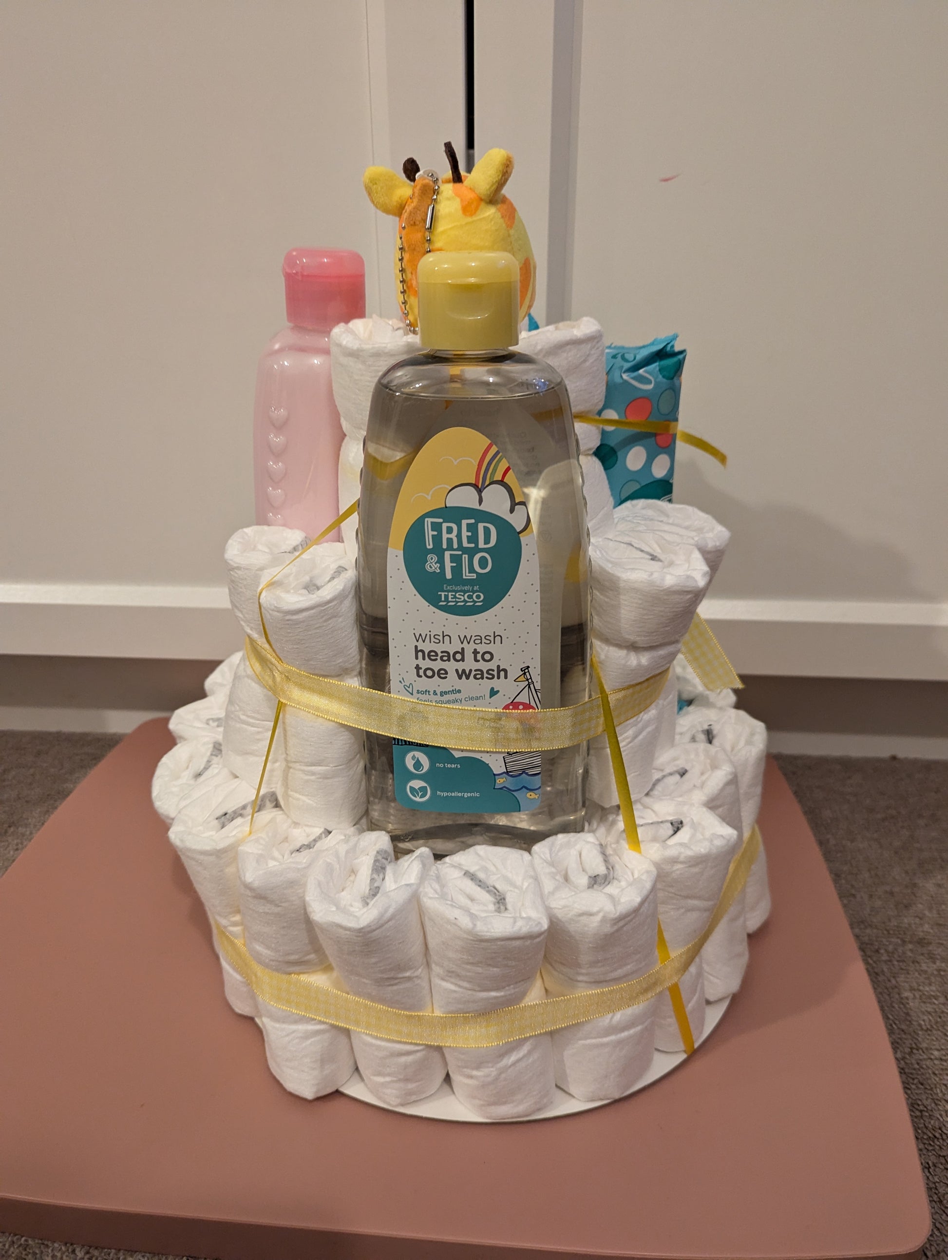 Indulge in the ultimate baby shower gift with our Personalised Nappy Cake! This unique nappy cake comes in a variety of designs and sizes, all customised to your preference. Give the gift of convenience and style with a touch of personalization. (Baby and parents not included.)